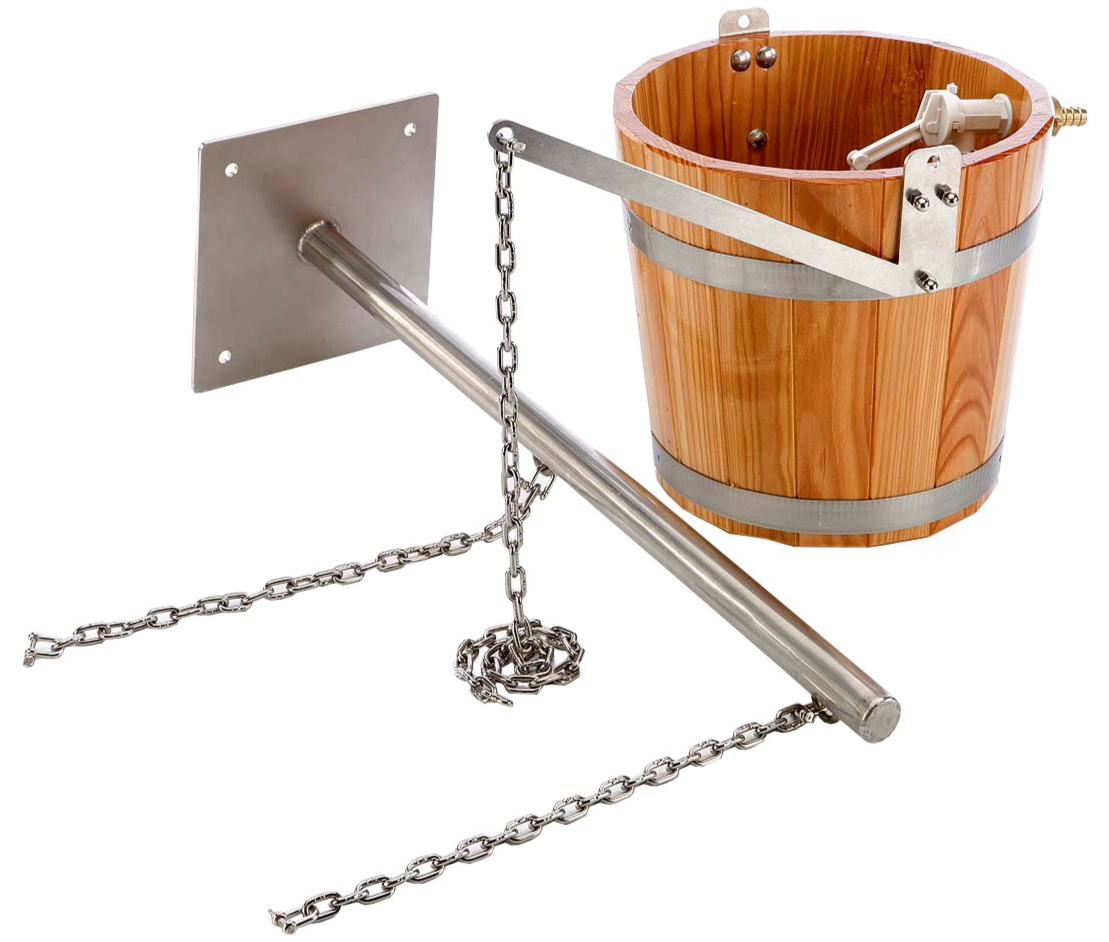 Schwalleimer aus Holz mit Tragarm aus Edelstahl