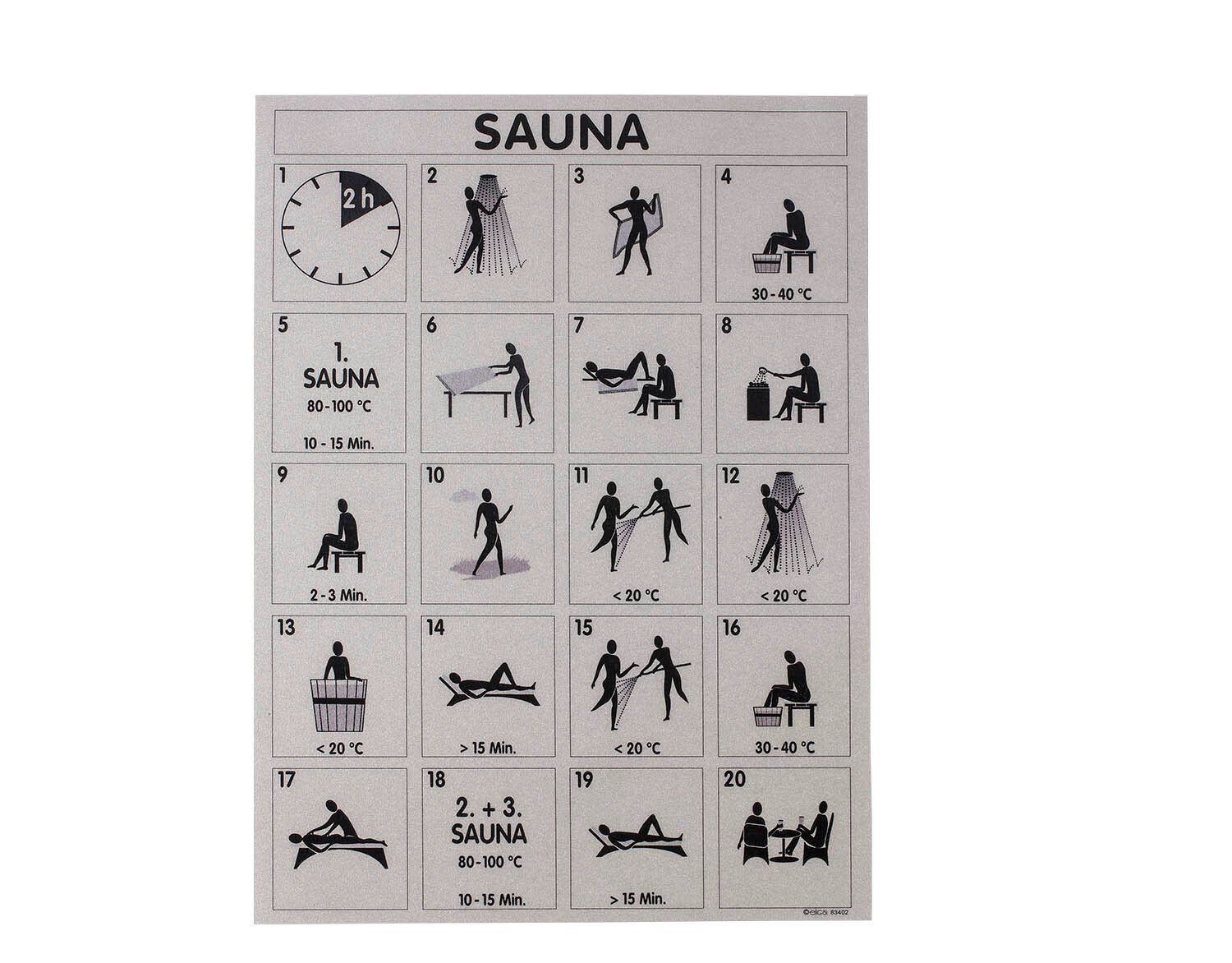 Sauna- und Vital-Baderegeltafel international DIN A4 laminiert