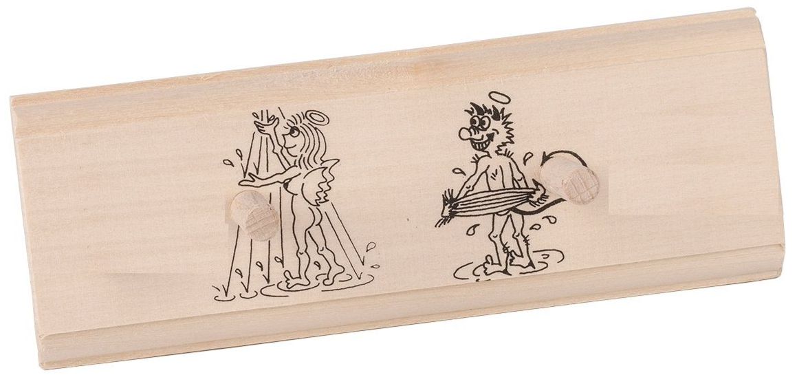 aus Holz natur mit 2 lustigen Bildmotiven „Engel & Teufel“ (Urheberrechtsschutz) bedruckt