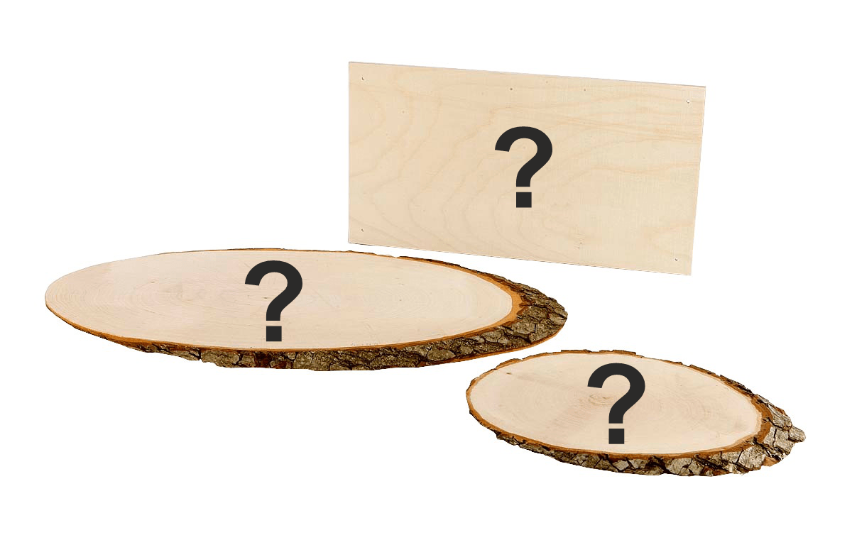 Rindenscheibe natur BxHxT ca. 420x160x20 mm oder ca. 250x110x12 mm oder Vollholzbrett BxHxT ca. 300x180x15 mm jeweils ohne Aufhänger. Eingebrannter Text nach Kundenwunsch in Schriftart Arial (andere Schriftarten oder per Lasergravur sind