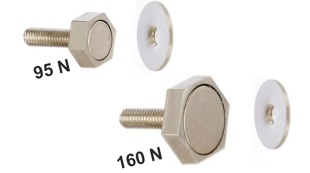 (ca. 9,5 kg) im Sechskantgehäuse 15 mm; inkl. U-Haftblech geeignet für Glastürenstärke 8 mm, Gew. ca. 28 g