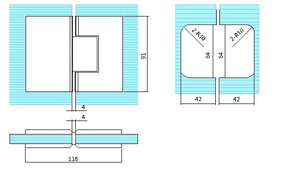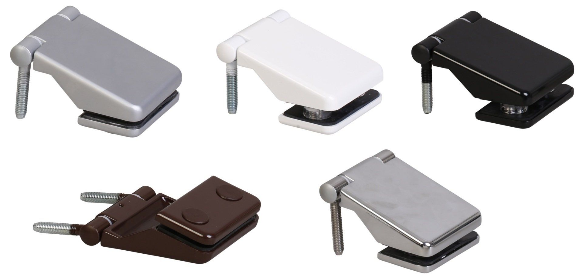 Pendeltürbänder 180° für Glas-an-Glastüren mit Mausohr-Bohrungen
