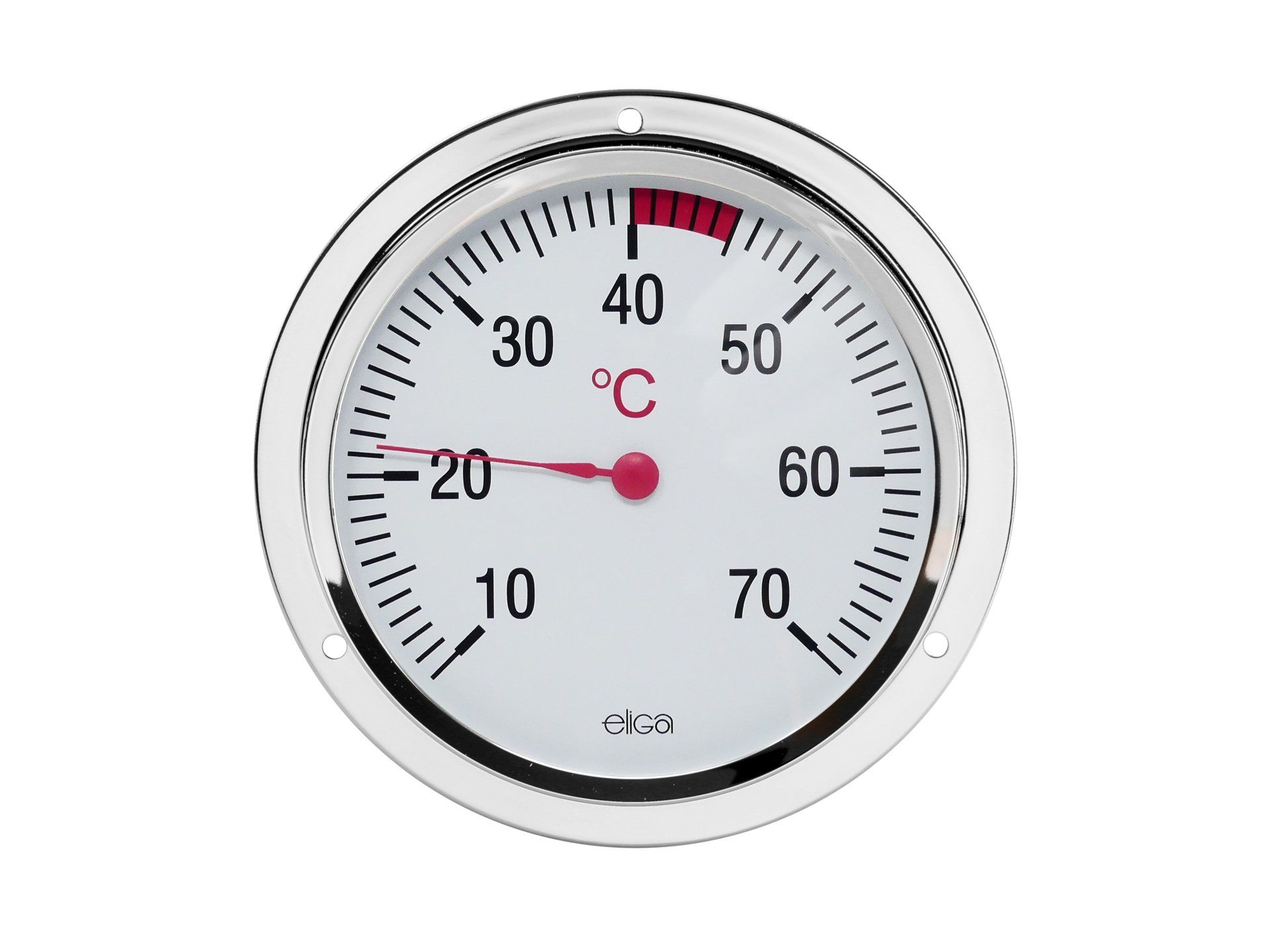 wasserdichtes Gehäuse aus Edelstahl, deshalb beschlägt es im Dampfbadraum nicht und damit bleibt es gut ablesbar, Skala weiß ca. 115 mm - Dampfbadmessbereich ist farbig markiert