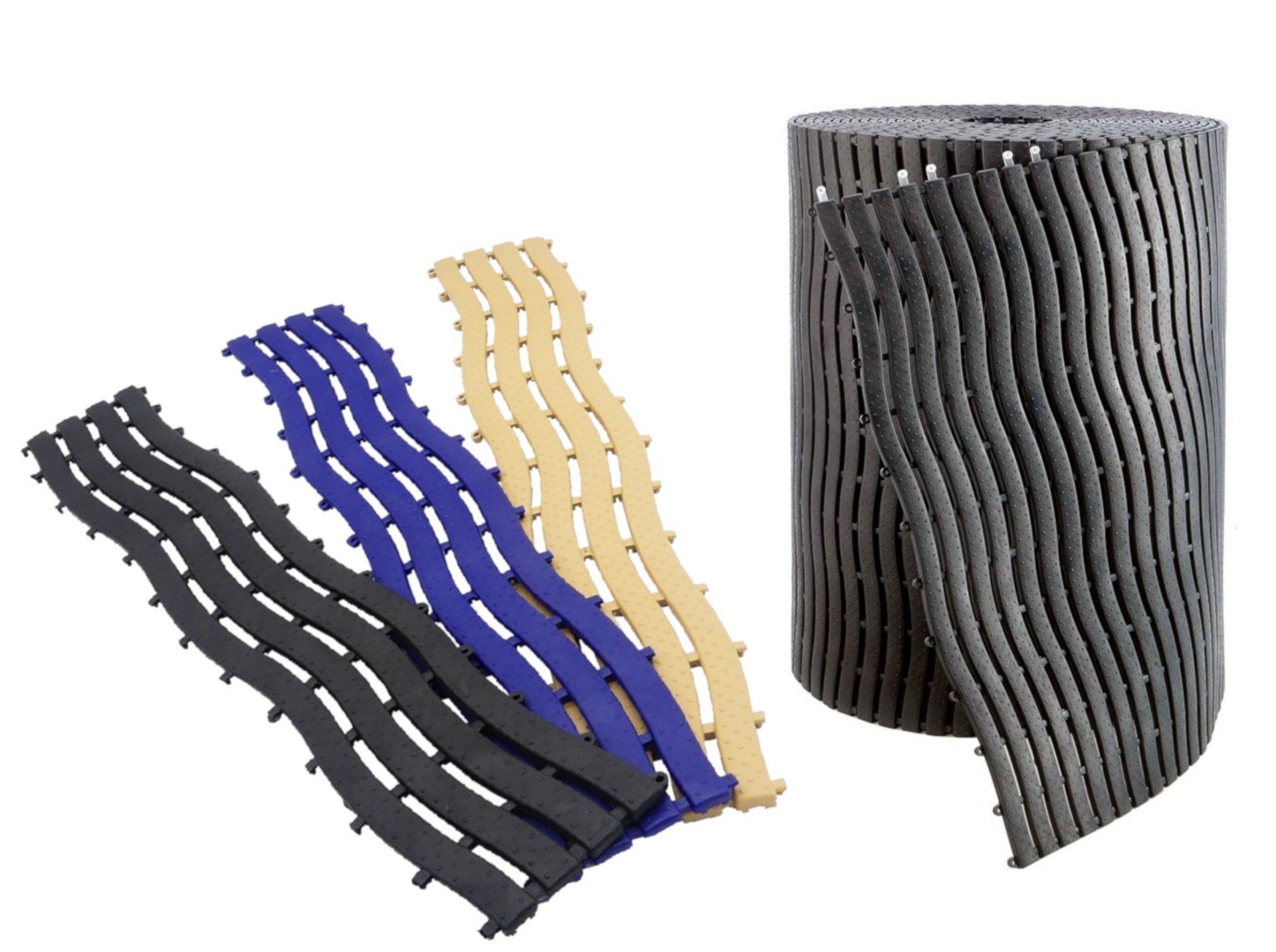 aus angenehm zu begehendem PE/EVA-Kunststoff, für Sauna, Dusche, Dampfbad und Schwimmbad geeignet. Komplette Rolle mit 16 m Länge - jede gewünschte Teillänge ist ohne Aufpreis lieferbar, einzelne Elemente mit ca. 10 cm sind zu jeder Länge ohne Schneiden zusammensetzbar, Breite ca. 58 cm - mit Verbindungsstücken Art.-Nr. 85485 ist die Breite für größere Flächen erweiterbar, erfüllt die Anforderungen der Rutschhemmung für den höchsten Anwendungsbereich (= Bewertungsgruppe C) lt. DIN 51097, sehr guter Wasserablauf, antibakteriell und pilzabweisend, UV-beständig, aufrollbar zur Reinigung, Einsatzbereich -35 °C bis +70 °C, Stärke ca. 9 mm, Gew. ca. 2,2 kg/m²