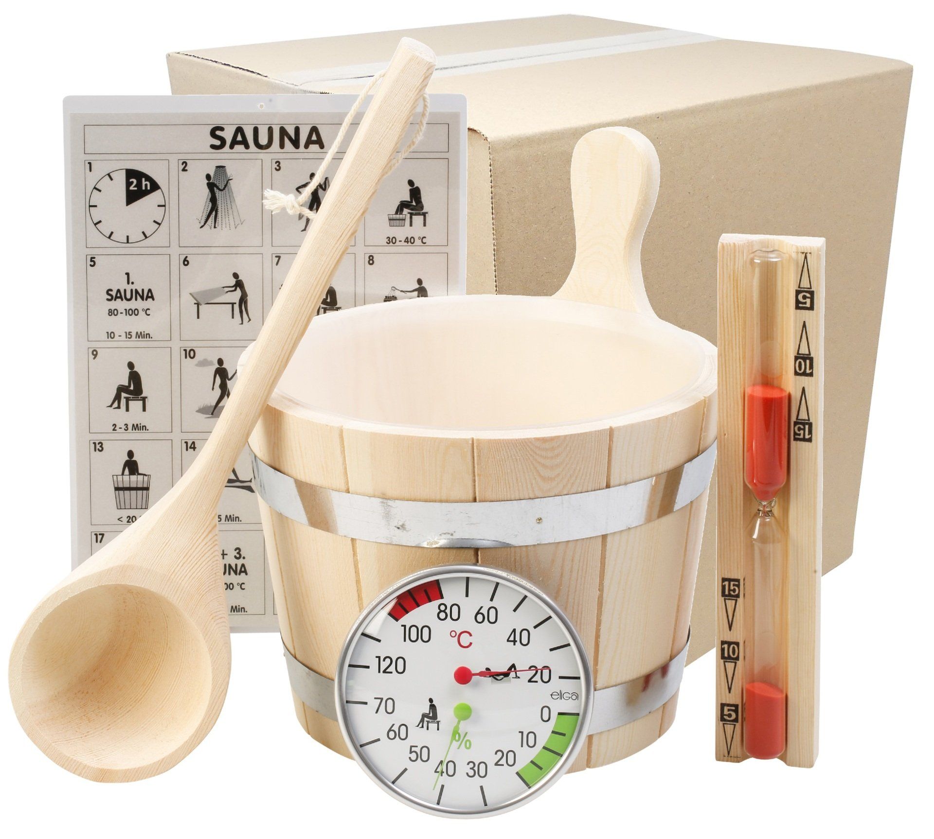 incl. plastic insert and carry chain made of stainless steel, wooden staves with tongue and groove are tied with 2 band-iron hoops