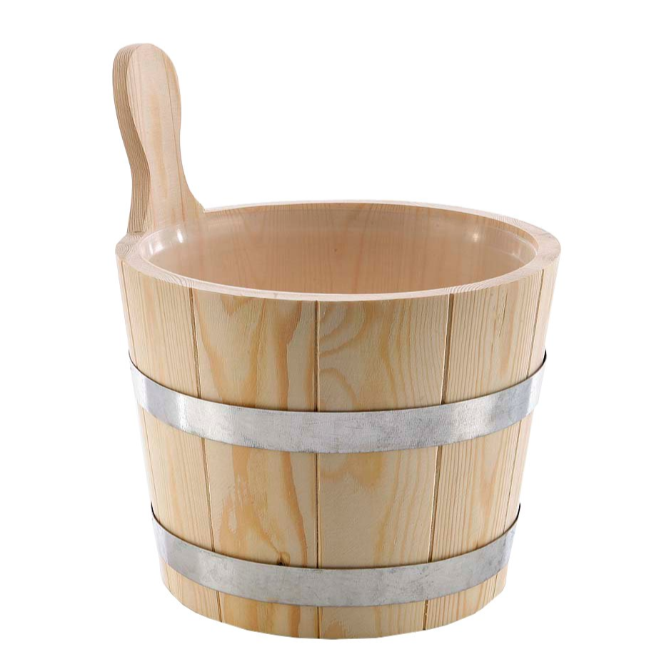 for commerical sauna use, wooden staves with tongue and groove are tied with 2 band-iron hoops