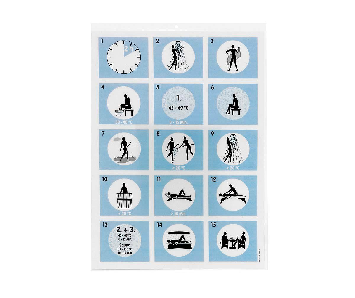 printed with picture language (copyright) on 5 mm thick crystal-clear acrylic glass with polished edges, your company logo print is possible, incl. 2 wall spacers. High quality design appropriate to design for sauna art. no. 83415