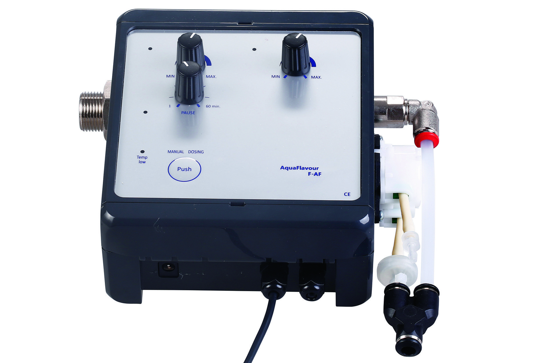 quantity of the infusion concentrate (max. 12 ml/infusion), water amount (max. 220 ml/infusion) as well as the frequency of the infusion are adjustable by the customer. The ready to plug in device for wall assembly is suitable for a direct connection to the water conduit with a max. water pressure of 7 bar (a manual water shut-off valve and a return valve must be additionally installed by the customer), incl. temperature sensor for the prevention of a infusion when the sauna heater is cold. Hose approx. 1.5 m for the connection to the infusion concentrate container and hose approx. 5 m for the connection to the sauna heater shower is included. Sauna heater shower see art. no. 89871 is not included, connections: electr. 100-240 V/50-60 Hz, water intake 1/2”