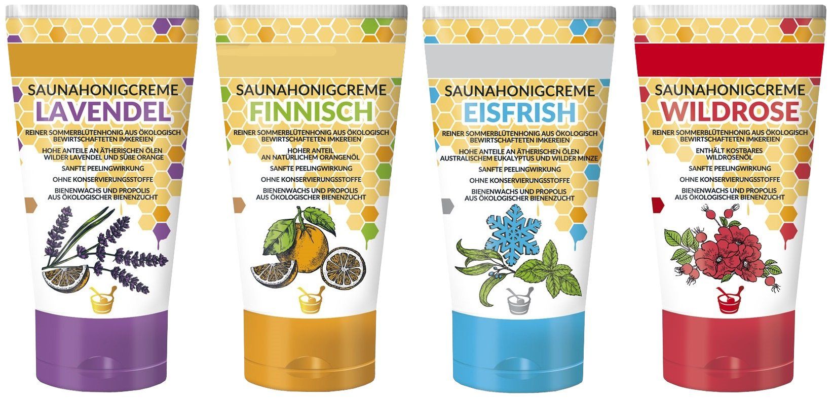 apply to the wet skin in sauna or steam bath room and let it soak in, wash off afterwards under the shower. Soft peeling effect by finely ground apricot kernels, nourishes and moisturises the skin with natural pure blossom honey, propolis and beeswax from ecologically farmed bee keepers, produced with high quantities of pure natural ethereal oils, free from preservatives. Thick consistency - so that it doesn’t drip onto the sauna benches, larger sizes are available on request