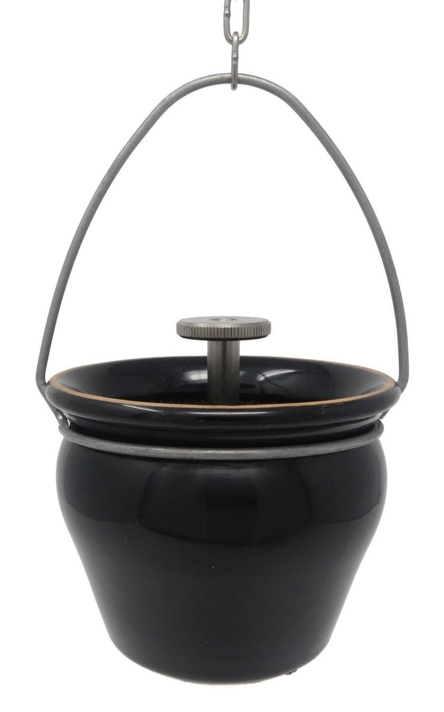 the upper edge and the bottom are due to production reasons unglazed in sand-beige colour, with stepless adjustable drop valve to hang up directly above the sauna heater with the included chain 1 m and ceiling hook made of stainless steel. The steady supply of water (if desired with scent) on the hot infusion stones creates a plesant sauna climate through a constantly increased air humidity.