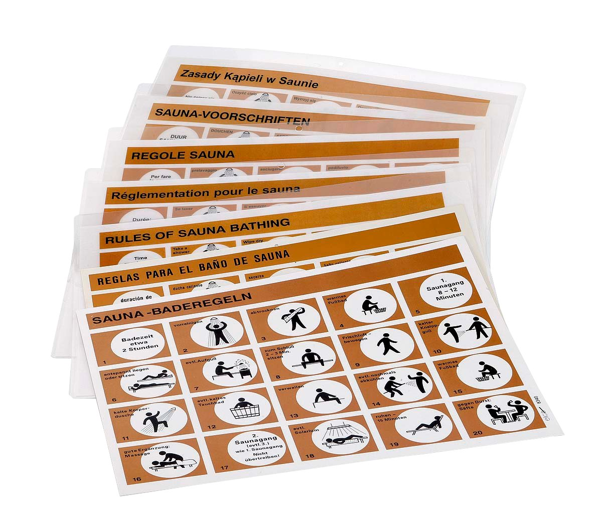 Sauna-Baderegeltafeln mit diversen Sprach-beschreibungen DIN A4