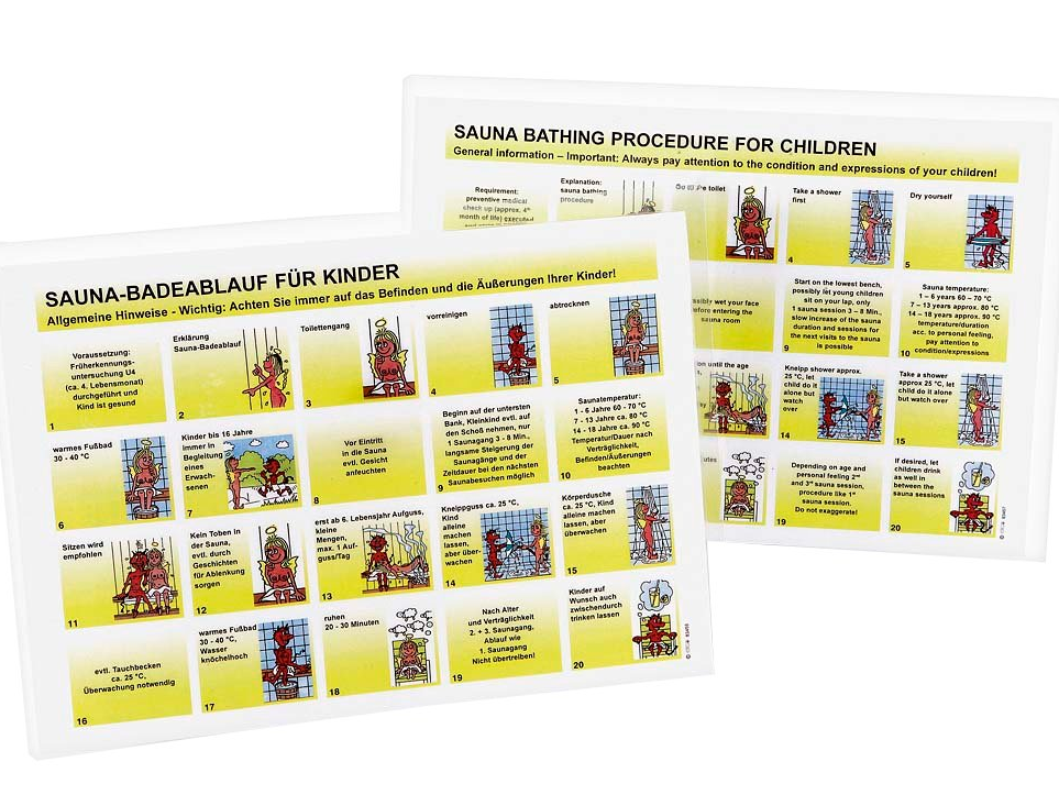 Sauna-Badeablauftafel für Kinder DIN A4 laminiert