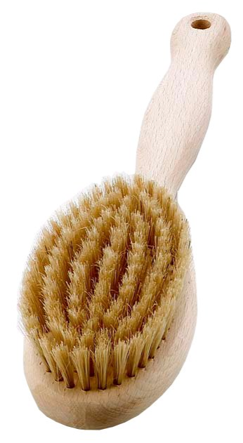 aus Holz natur mit ca. 2 cm hohen Naturborsten, europäische Fertigung. Eine Hautmassage fördert die Durchblutung