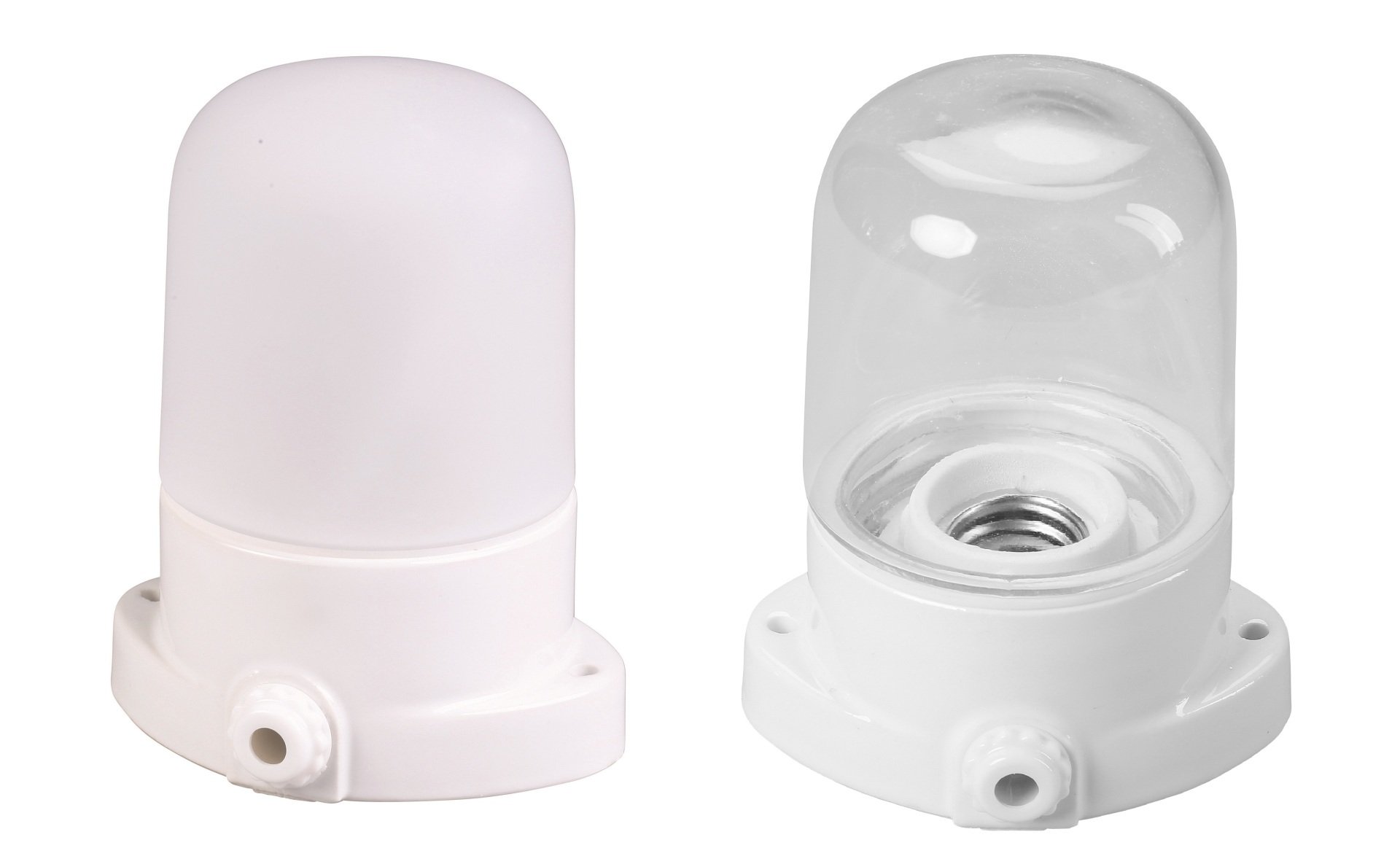 max. zulässige Umgebungstemp. 125 °C, IP55-wassergeschützt, mit mattierter Glaskuppel, Keramik-Schraubsockel für Glühbirnen mit Fassung E14, nur zur Wandmontage bis max. 40 W (Halogenbirnen bis max. 28 W) geeignet, Spannung 230 V/50 Hz, geeignet für Blendschirme Art.-Nr. 8527, 8528, 85292, 852950 und 85298